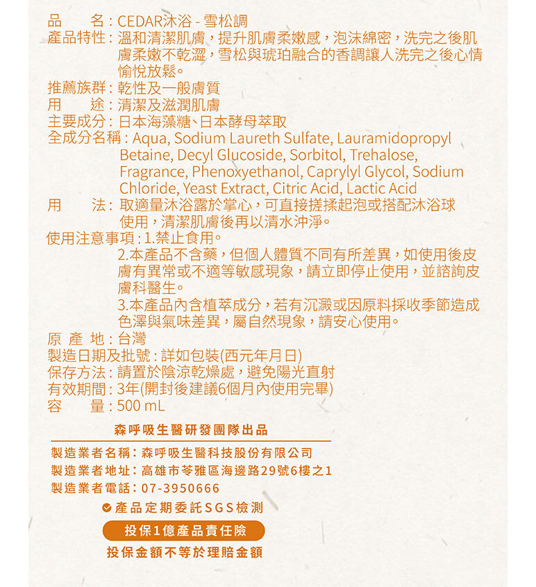 品 名:森挪威 CEDAR沐浴-雪松調