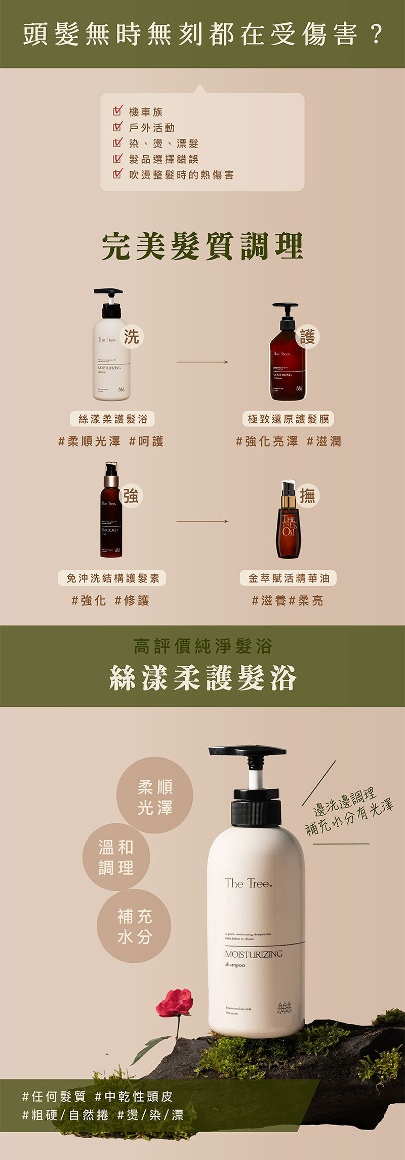 用 途:柔順、光澤、不油膩,改善毛躁髮質,髮絲零負擔。