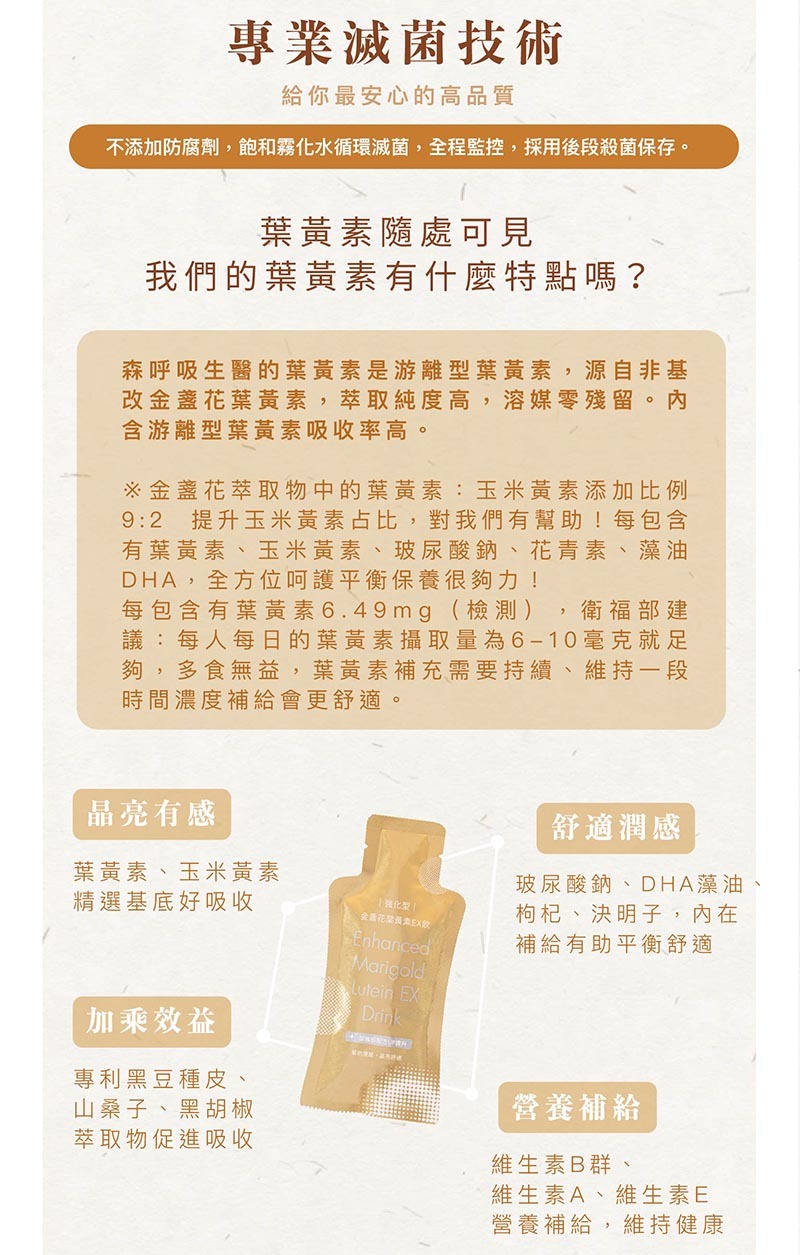 (出廠檢測每包含有6.49mg游離葉黃素、 建議每天餐後飲用一包)
