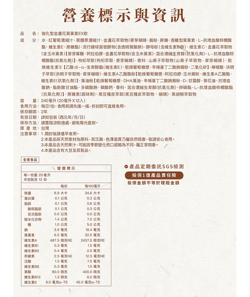 強化型金盞花葉黃素EX飲 (12入/盒) 2027/04/24