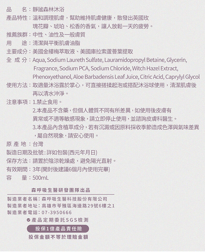 靜謐森林沐浴 (500mL) 2027/12/10