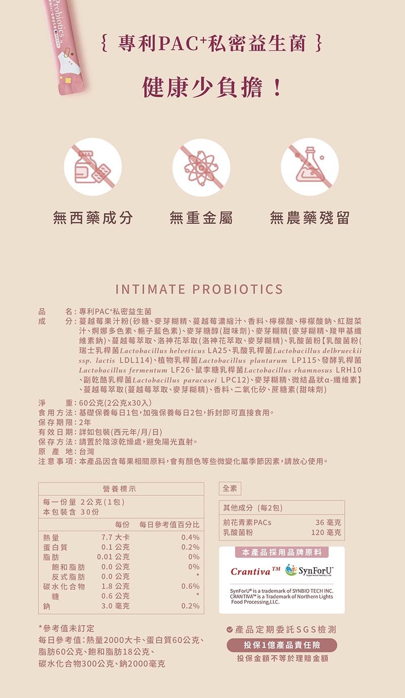 品 名:專利PAC+私密益生菌