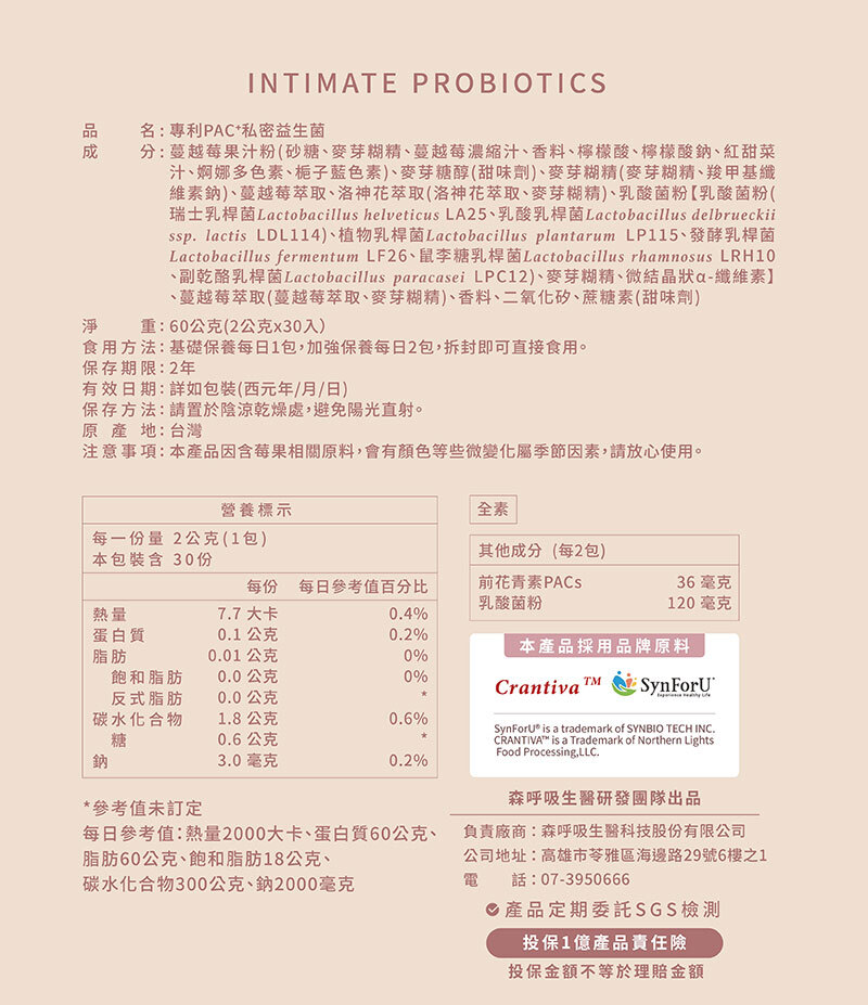 專利PAC+私密益生菌 (30入/盒) 2026/12/24