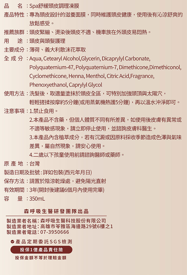 品 名:森挪威 SPA舒緩頭皮調理凍膜