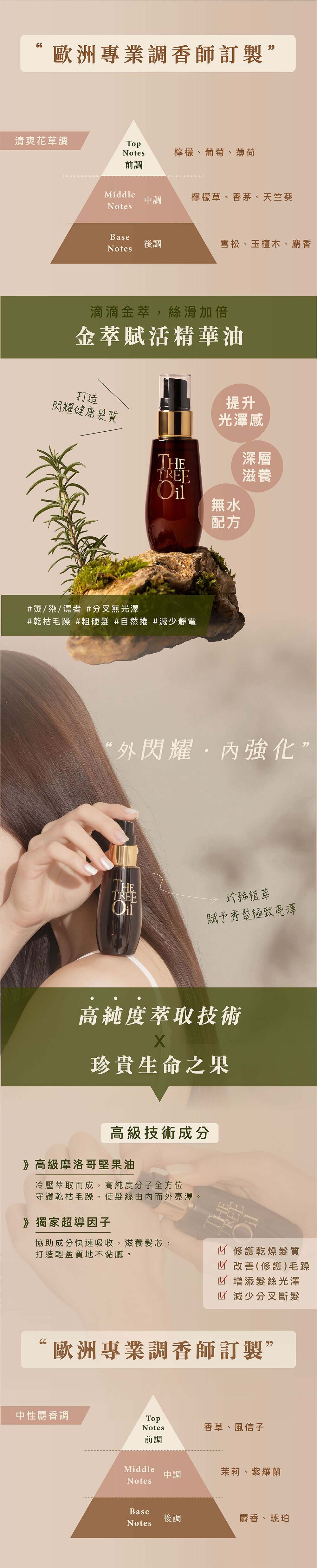 超輕盈不油膩的滋養配方,質地輕盈,荷蘭植萃堅果油,不加一滴水,冷壓萃取技術,使秀髮柔軟卻不致扁塌厚重。