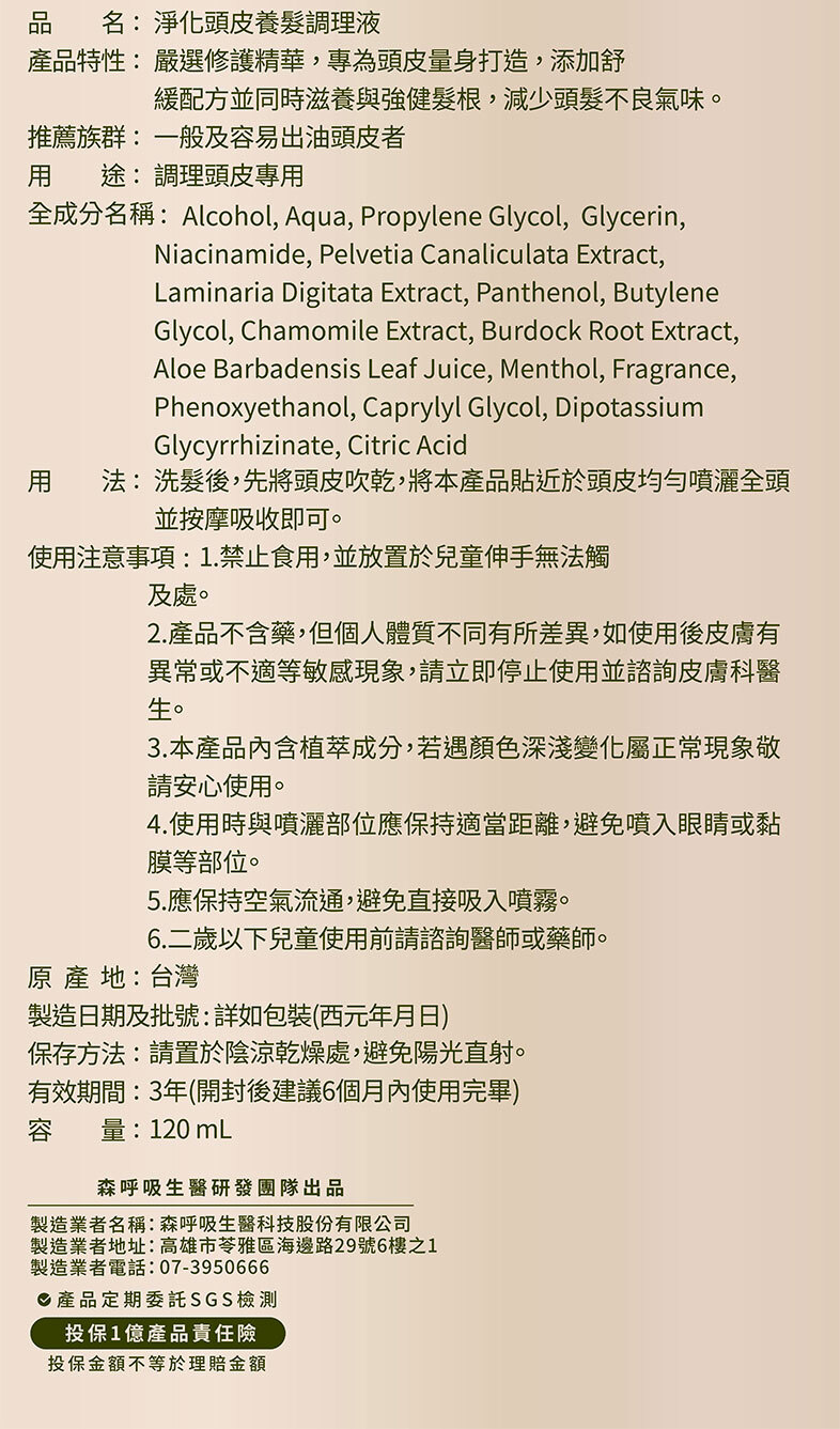 淨化頭皮養髮調理液 (120mL) 2028/10/22